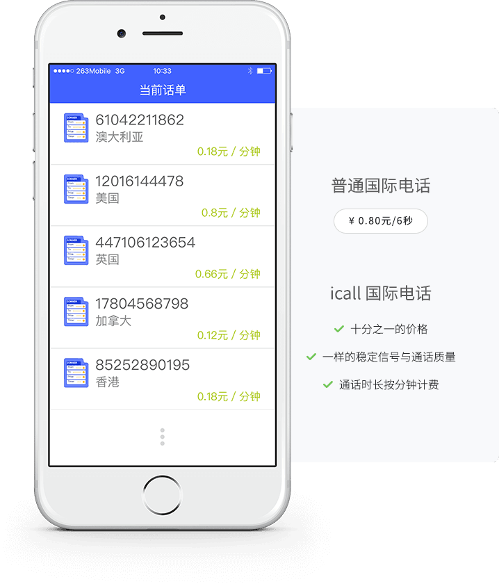 国际专线一键呼出,无需开通国际长途,不需要连WiFi